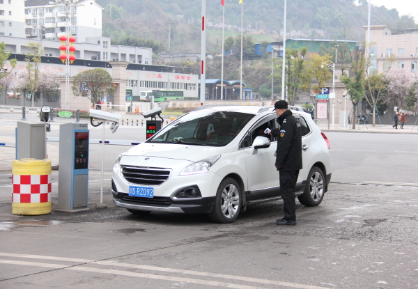 “您好,请停一下,检查车辆,检查完毕,请通行。”
