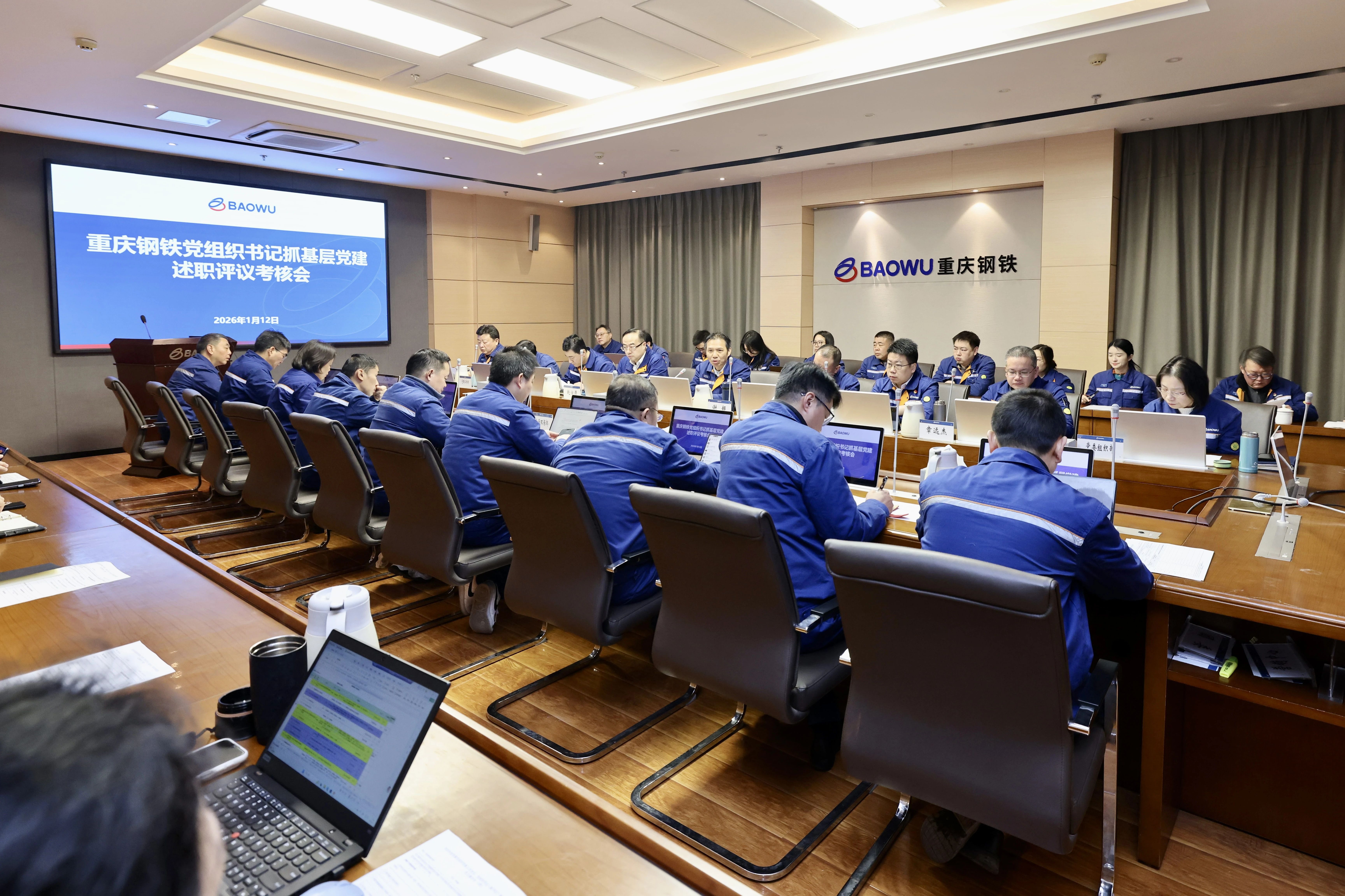 1月12日,重庆钢铁召开2025年度党组织书记抓基层党建工作述职评议考核会,这既是对过去一年党建工作的系统回顾与总结,也是对2026年党建工作的一次全面动员与部署。该公司党委书记、董事长王虎祥主持会议并对现场述职党组织书记进行点评。该公司领导班子,党群各部门负责人、各党委(总支)书记、副书记以及基层党支部书记、党员、职工代表参加会议。中南钢铁督导组以视频连线的方式对会议全过程进行指导并作集中点评。