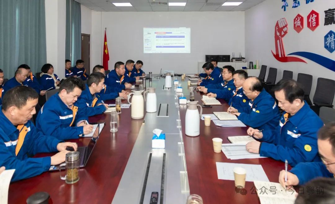 1月2日,新年第一个工作日,鄂城钢铁公司领导陆隆文、黄大军、夏峰到营销中心调研,与营销中心班子成员、模块总监及业务骨干面对面交流,听取2025年商业计划书及降本增效工作举措等情况汇报,宣讲形势与任务,提出下步工作要求。
