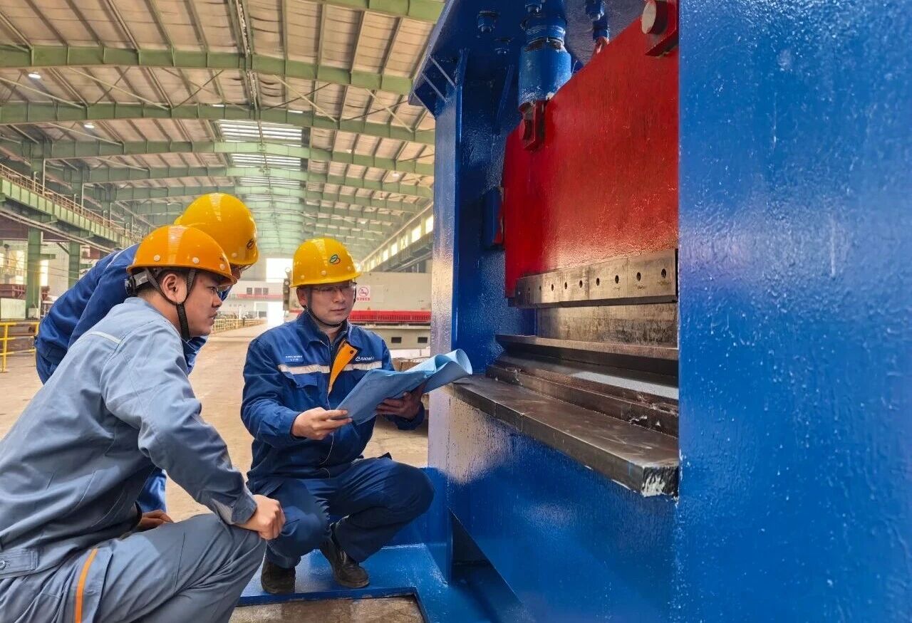在所有参与人员的共同努力下,自制折弯机终于安装完成。当12毫米的钢板在设备作用下缓缓弯折,最终形成完美的90度直角时,现场爆发出热烈的掌声。