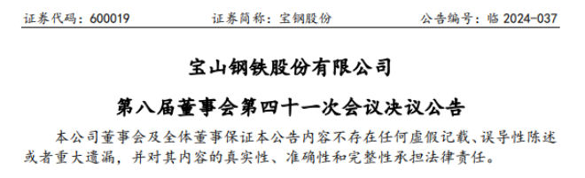 7月12日,宝钢股份发布了《宝钢股份第八届董事会第四十一次会议决议公告》(以下简称《公告》)。