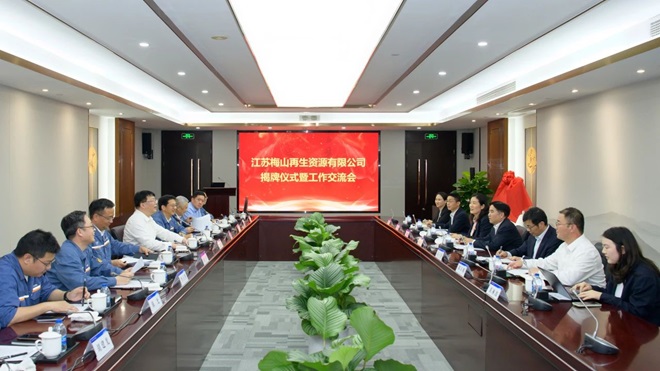 近日,江苏梅山再生资源有限公司(以下简称“江苏公司”)揭牌仪式在梅钢举行。
