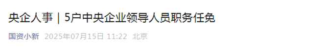 7月15日,国资小新发布了5户中央企业领导人员职务任免的通告,其中涉及了矿冶科技集团有限公司的相关人事变动。
