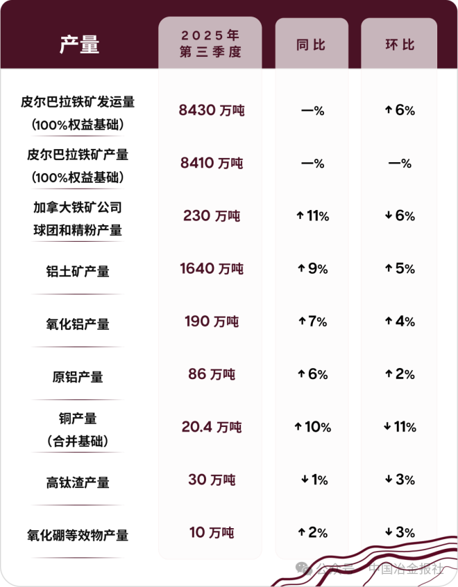 10月14日,力拓公布2025年第三季度生产业绩报告。