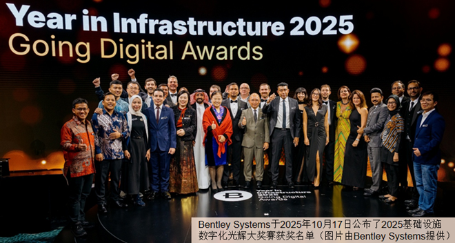 阿姆斯特丹 —(Bentley Systems 2025 年纵览基础设施大会)— 2025年10月17日——基础设施工程软件公司 Bentley Systems, Incorporated(纳斯达克股票代码:BSY)今天公布了2025基础设施数字化光辉大奖赛获奖名单。该年度赛事旨在表彰基础设施专业人士的卓越工作,以及他们创新应用Bentley软件,改进基础设施的设计、建造和运营方式。