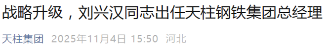 据公众号天柱集团11月4日发布消息,刘兴汉出任天柱钢铁集团总经理,协助董事长主持集团公司全面日常管理工作。
