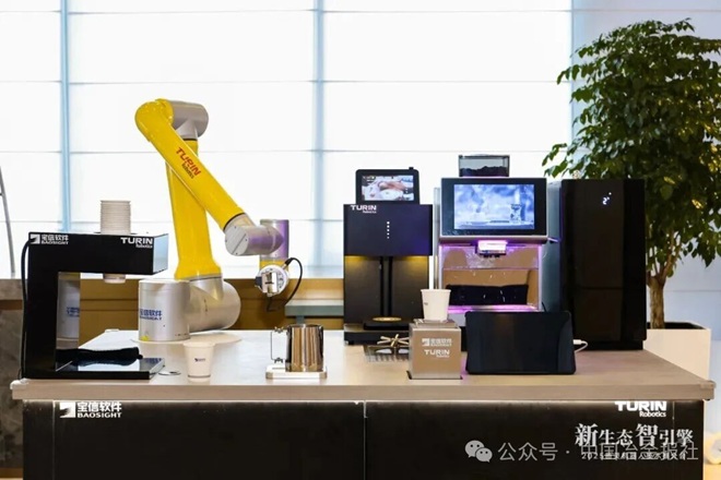 一杯杯由机器人精心制作的拉花咖啡,香气扑鼻。灵巧的“咖啡师”正稳稳地取杯、接取咖啡,以精准的动作吸引过往嘉宾驻足。几步之外,一台人形机器人正步履稳健地自主行走,仿佛预示着人工智能时代“新同事”的到来。11月7日,这样的场景正在“2025图灵机器人技术推介会”的现场上演。本次推介会由欧冶工业品主办,宝信软件图灵机器人承办,以“新生态·智引擎”为主题,在上海宝山隆重举行,作为第八届进博会期间的重要同期活动,邀请了来自中国宝武生态圈、产业界、学术界的160余位嘉宾,聚焦智慧制造生态的共建共享,探寻机器人走向千行百业、万家灯火的未来。