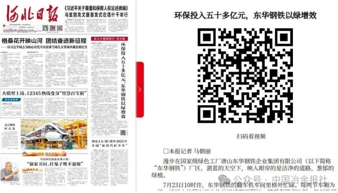 此前,河北日报发布《环保投入五十多亿元,东华钢铁以绿增效》一文。