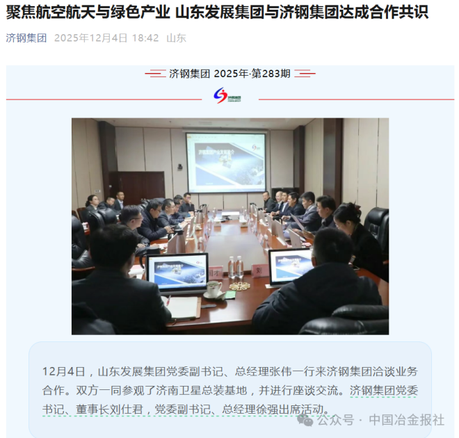 从济钢集团官方微信公众号12月4日发布中获悉,刘仕君已任济钢集团党委书记、董事长,徐强已任济钢集团党委副书记、总经理。