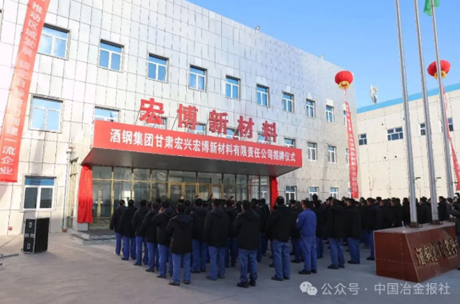 据酒钢集团公众号消息,12月24日上午,酒钢集团甘肃宏兴宏博新材料有限责任公司揭牌仪式举行,标志着宏兴股份炼轧厂从传统生产单元向市场化新材料产业经营主体转型,迈向高端化、智能化、绿色化高质量发展之路。