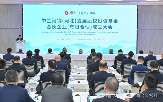 12月25日,中金河钢(河北)发展股权投资基金成立大会在河钢研发中心举行。河北省委常委、常务副省长赵辰昕,河钢集团党委书记、董事长刘键,中金公司党委书记、董事长陈亮出席大会共同见证基金成立。储备子基金代表BlueFive资本集团董事会副主席谢赫·穆巴拉克·阿卜杜拉·穆巴拉克·萨巴赫作表态发言。河钢集团与中金资本强强联合设立基金,是双方布局新赛道、培育新动能的战略举措,也是携手打造产融结合新典范、助力京津冀协同发展的务实行动。该基金总规模320亿元、运营期15年。