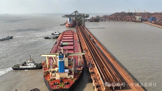2026年1月17日,阳光明媚,蓝天白云。位于浙江嵊泗的中国宝武马迹山港内,悠长的汽笛声划破长空,定格了世界钢铁业发展史上的一个重要里程碑——第一船近20万吨西芒杜铁矿石,顺利运抵中国港口。