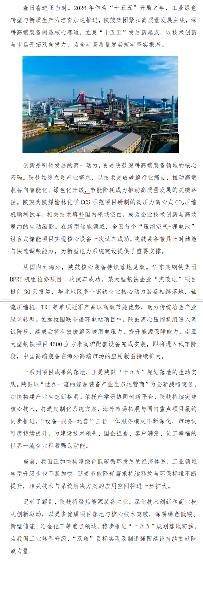 陕鼓核心装备密集落地 赋能冶金绿色转型升级