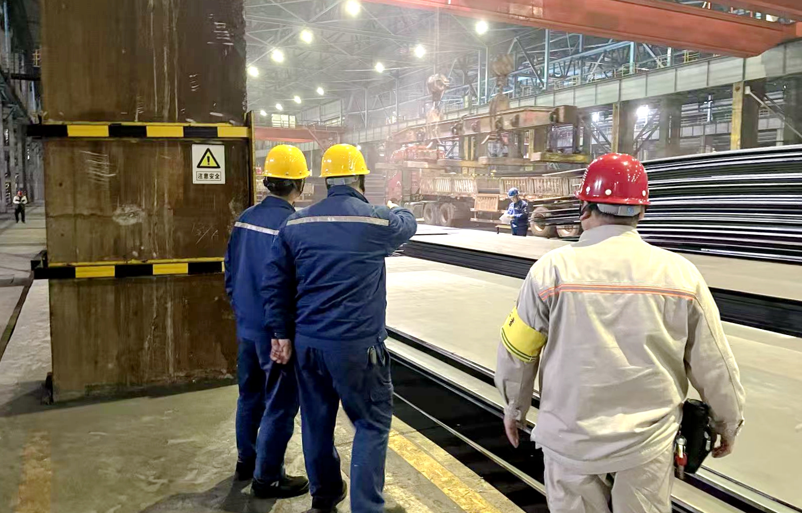 仓储车间积极协同轧材厂推进宽板末端库过跨平板车适应性改造,提升板材过跨倒运能力。对于提货及时的客户(50钢、普板、低合金)优先安排放末端库1#库,提货周期长的船板、部分模具钢安排放延伸库。每日制定开单清库需求,以表格形式发板材协调群协调优先开单。车间通过高效利用宽板末端库过跨平板车进行板材倒运,今年已累计减少板材中转量8.51万吨,汽车厂内倒运费用节省30.49万元。