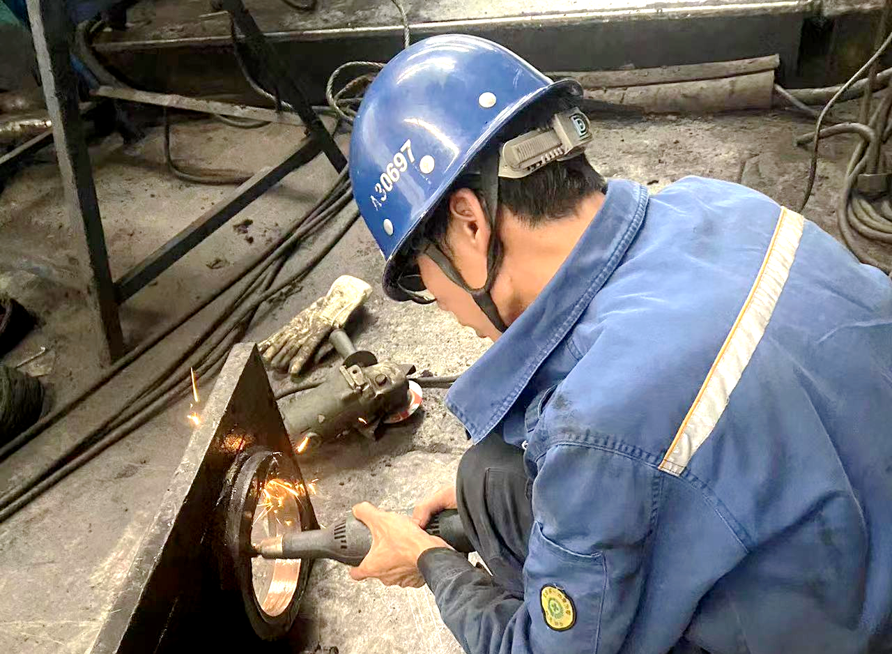390轧机压下机构故障,无法正常收放料,影响轧钢质量与效率。棒一准备班骨干排查发现,是导向套生锈抱死、缺润滑油,收料装置磨损滑牙所致。他们秉持“能修不报废、能用不换新”的原则,全面拆卸装置,再用打磨机对齿箱及盖板上的导向套进行精细打磨至间隙0.3mm的标准,补充润滑油保养;针对收料装置的磨损滑牙问题,采用堆焊工艺修复后再进行打磨处理,确保收放料功能恢复正常。修复后压下机构装置恢复正常转动,保障了轧机能够稳定调节压放辊缝,有效提升了轧钢质量与生产效率,避免了因无法正常压放辊缝可能引发的堆钢事故,直接省下6.09万元的备件费用。