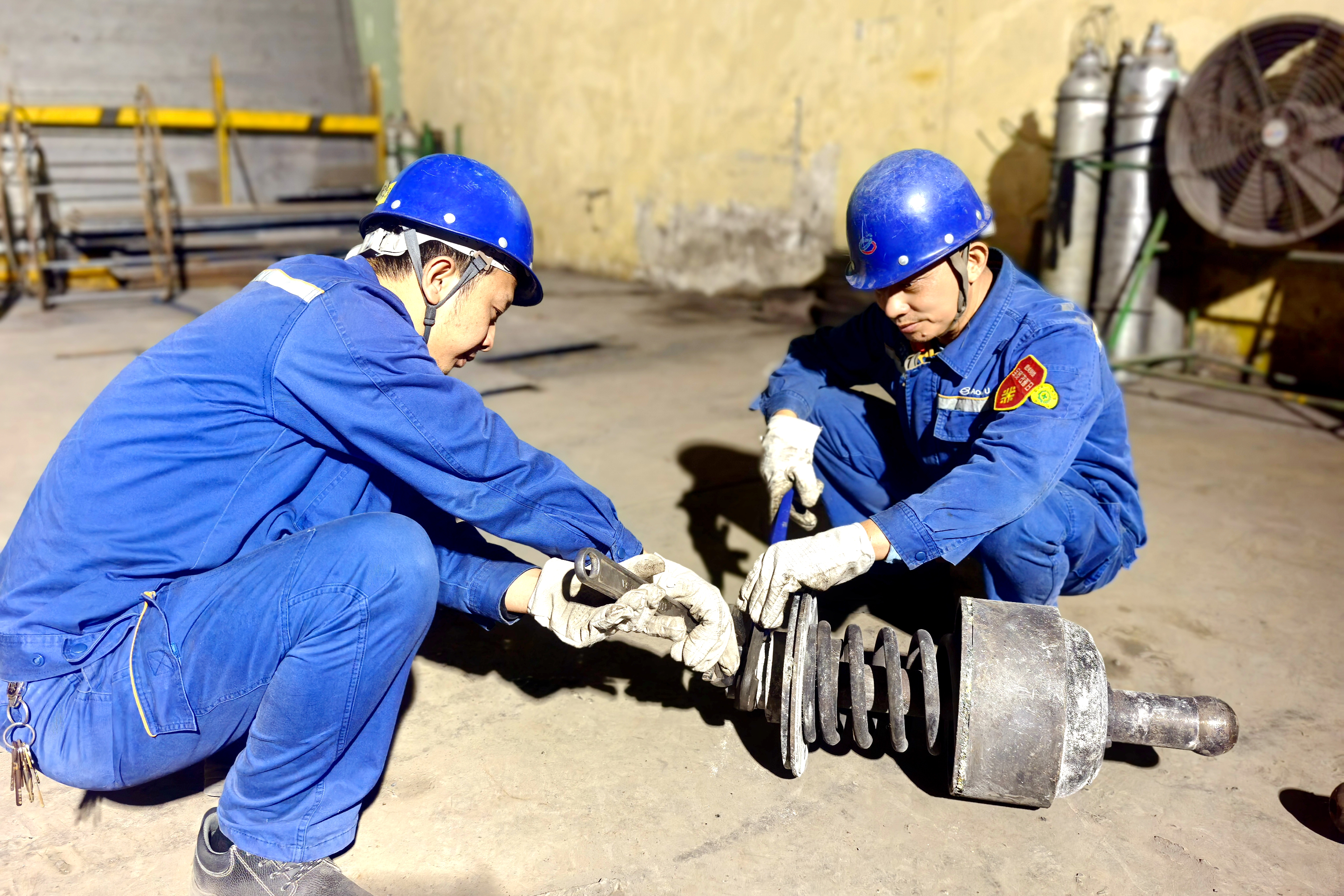 他们将下线装置逐一解体分拆,化身“设备医生”。他们精准诊断:清洗拆解后分类评估零部件状态,完好件精细打磨复用,暂不可用件登记入库待配。妙手回春:对弯曲杆芯采用“火烤加热+手工矫形”组合疗法,辅以自制临时校准挡板,硬是将变形部件“拉回正轨”。争分夺秒:可即时拼装的部件连夜调试,确保“不过夜修复、次日即上线”,最大限度压缩修复时间。