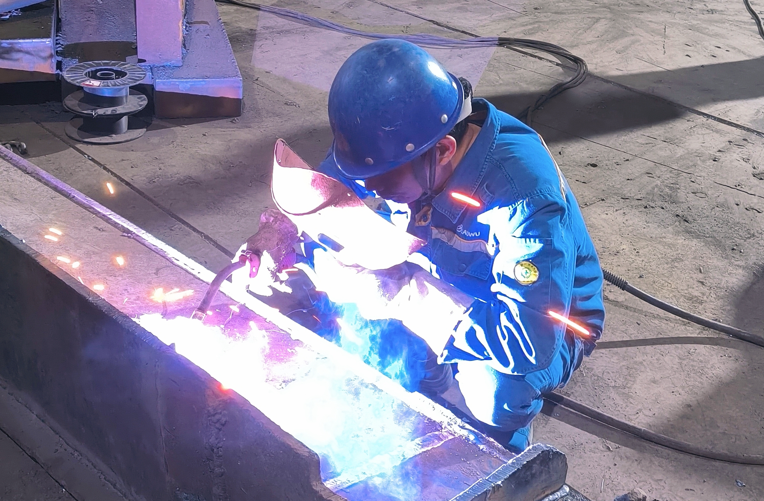 “核心部件完好,必须让它重获新生!”班组骨干现场“会诊”后果断决策。一场与时间赛跑的“设备手术”随即展开:割枪游走间精准剖开断裂处,砂轮打磨出标准坡口;焊条在老师傅手中化作“缝合针”,断裂板体被牢固焊合;火把炙烤配合大锤精准敲打,扭曲变形的板体渐复平整;同步更换新导轮,对插板底座补焊加固,不放过任何细节……经过一番精心维修,原本“伤痕累累”的推渣板焕然一新。