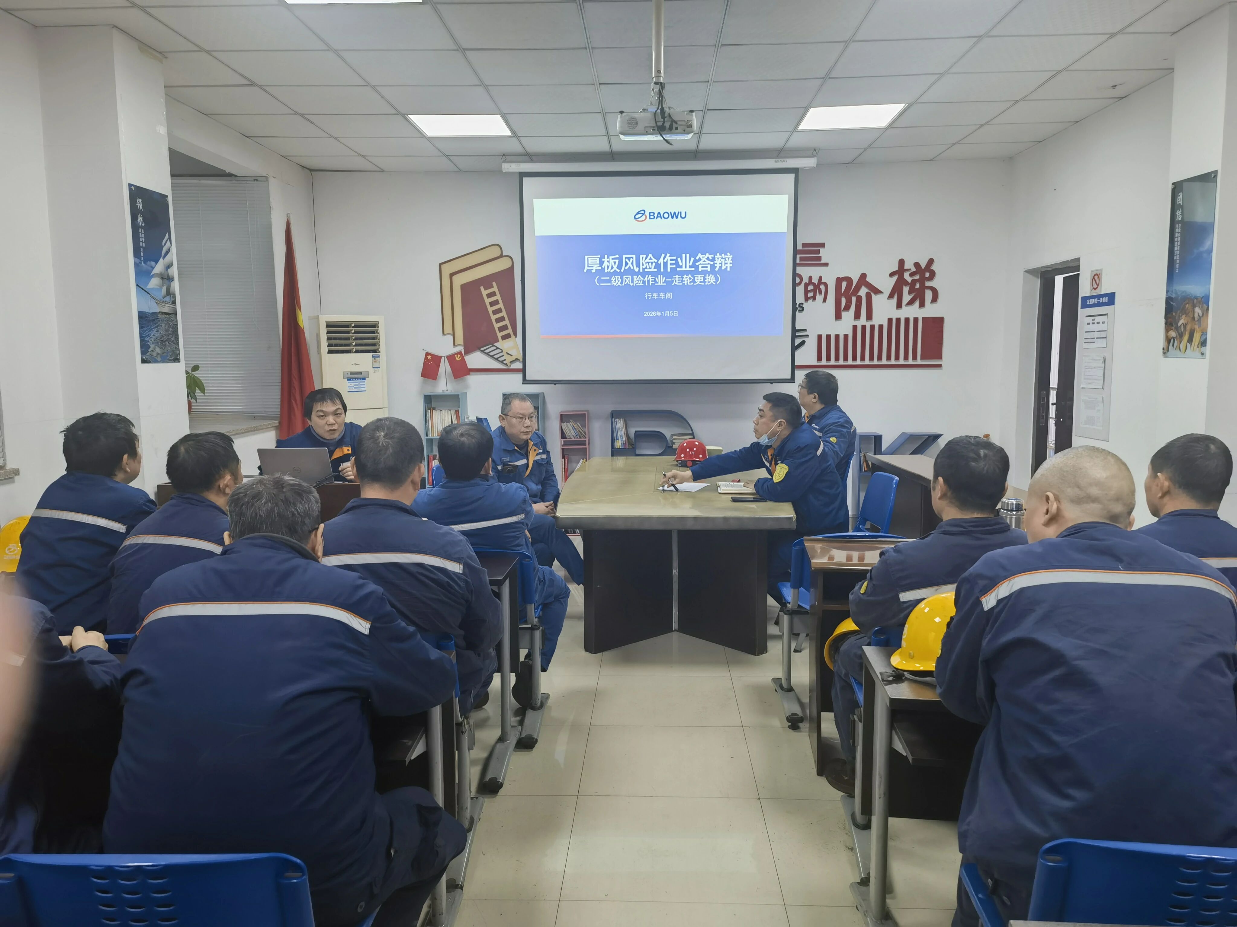 “班前会是统一思想、识别风险的第一道防线!”轧钢厂厂长杜静带领管理团队深入参检单位班组,“沉浸式”参与年度首次班前会,将“扛起第一责任人职责”的信号清晰传递至每一位参检员工,有效凝聚团队士气,为这场检修“首秀”注入了“强心剂”。