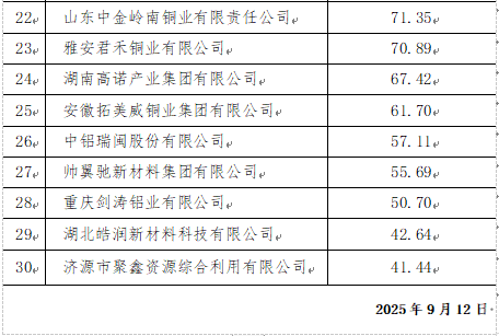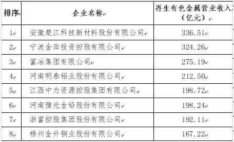 9月12日,为推动再生有色金属产业高质量发展,培育壮大领军企业并树立行业标杆,中国有色金属工业协会再生金属分会联合中国有色金属工业协会信息统计部,依据严谨、公正、科学的原则,对企业自主申报的2024年再生有色金属营业收入进行了审核和排序,经公示无异议,发布2024年再生有色金属企业营业收入30强名单。