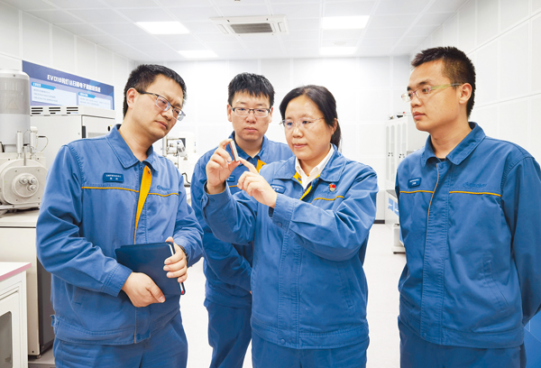拿着从正式钢板上取回的试样,庄迎与同事探讨该如何将工艺参数进一步优化,让产品性能提升一个新高度。
