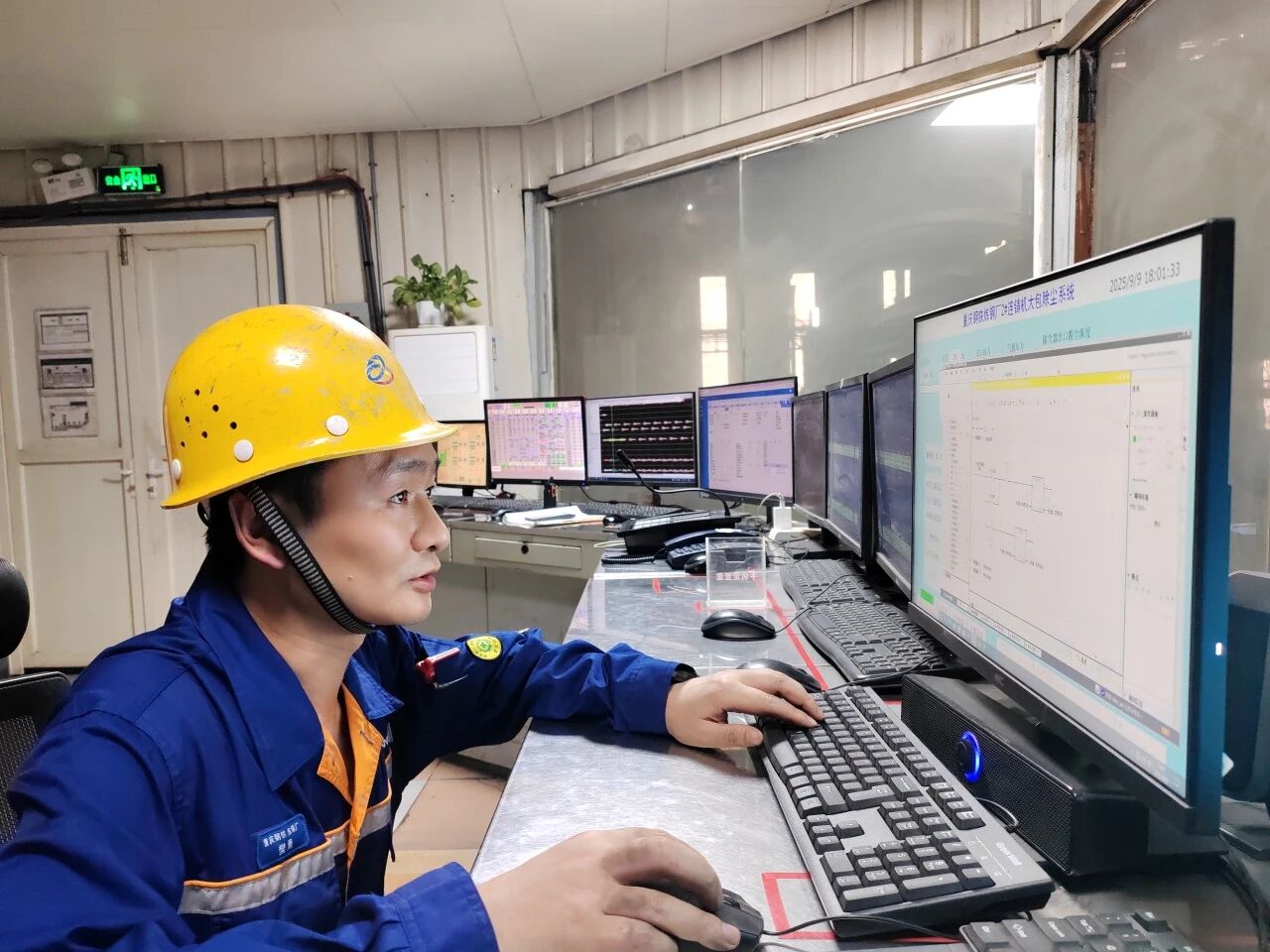 樊勇主动牵头攻坚,亮出一套“组合拳”:他自主设计报警与停机阈值,一旦设备异常,画面会自动变红预警,弹窗和音响也会同步提醒;紧接着敷设信号电缆,把“炉次开始”“炉次结束”的生产信号接入除尘系统,让两个系统实现信息互通;最后优化控制程序,根据开停浇不同阶段产尘特性实现风机自动启停与高低速切换。