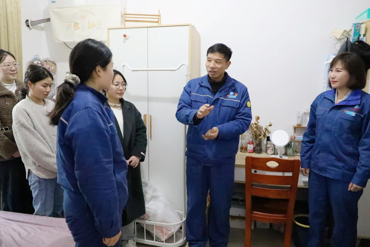 梁建国、张楠一行走进硕博人才公寓,与硕博员工们亲切交流,详细询问大家的工作进展、生活状况及节日安排,认真倾听青年人才在岗位实习、成长成才过程中的感悟与诉求。领导们细心察看公寓居住环境,关切叮嘱大家合理安排作息,兼顾好工作与休息,劳逸结合、蓄力前行,并为大家送上节日慰问品。