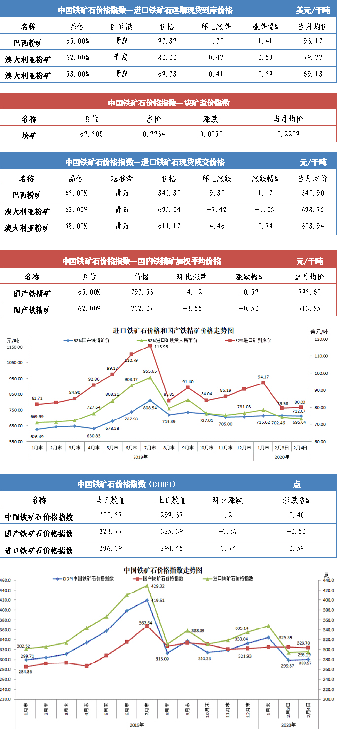 【行业指数】2月4日中国铁矿石价格指数