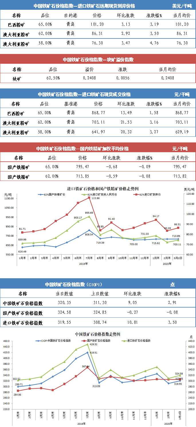 【行业指数】3月2日中国铁矿石价格指数