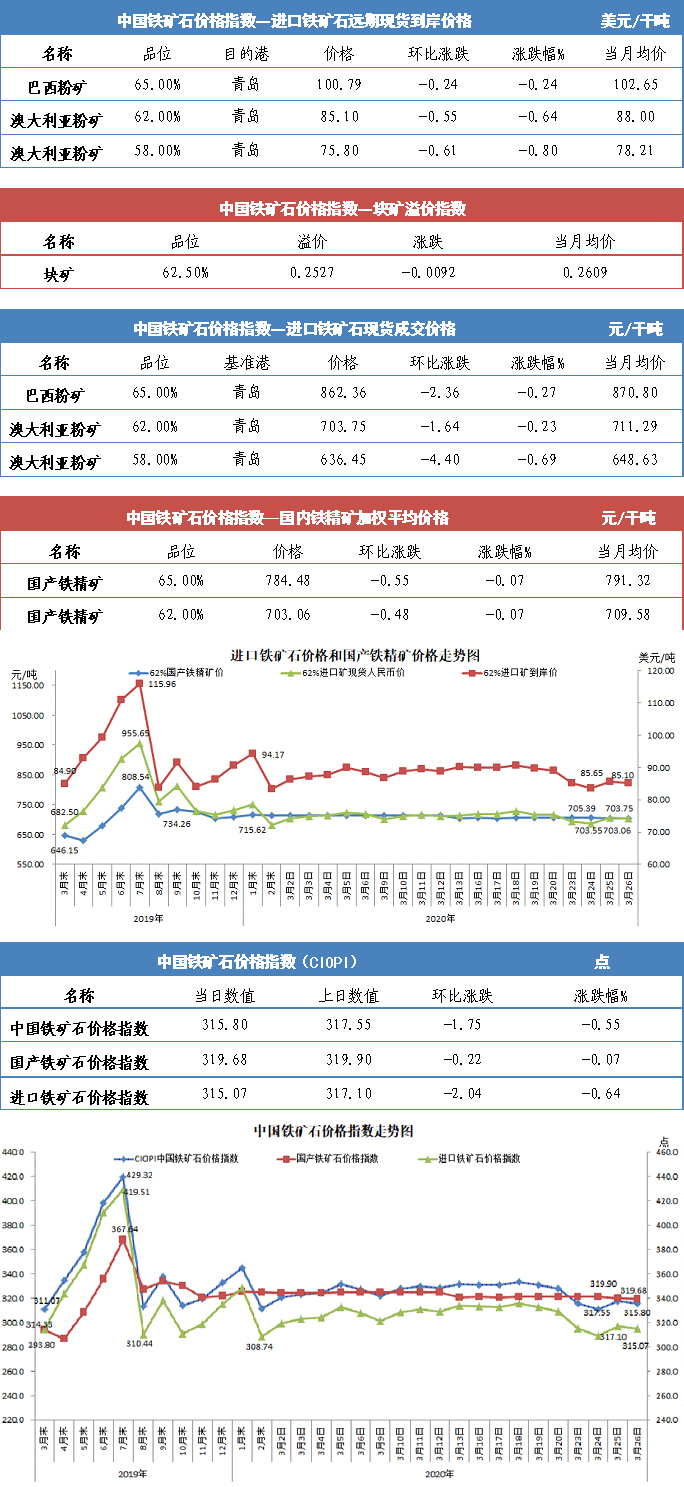 【行业指数】3月26日中国铁矿石价格指数