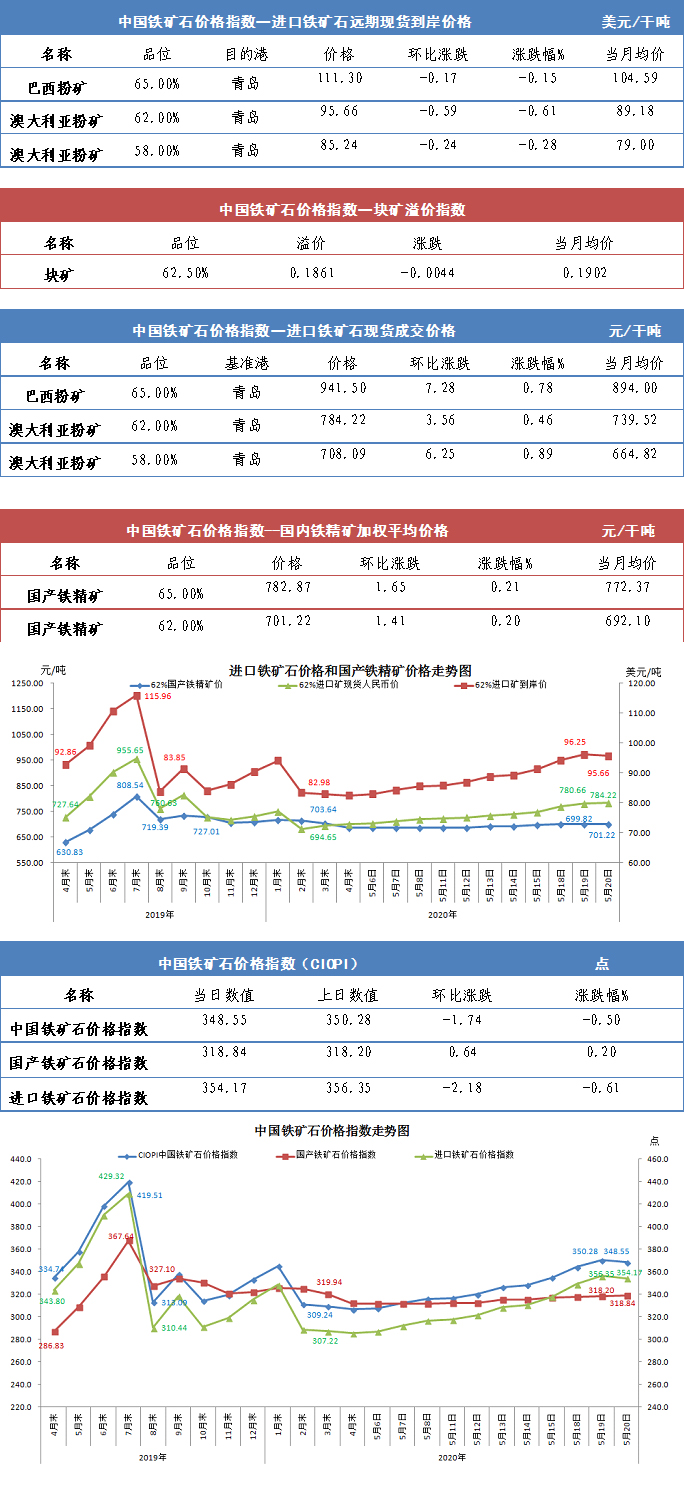 【行业指数】5月20日中国铁矿石价格指数