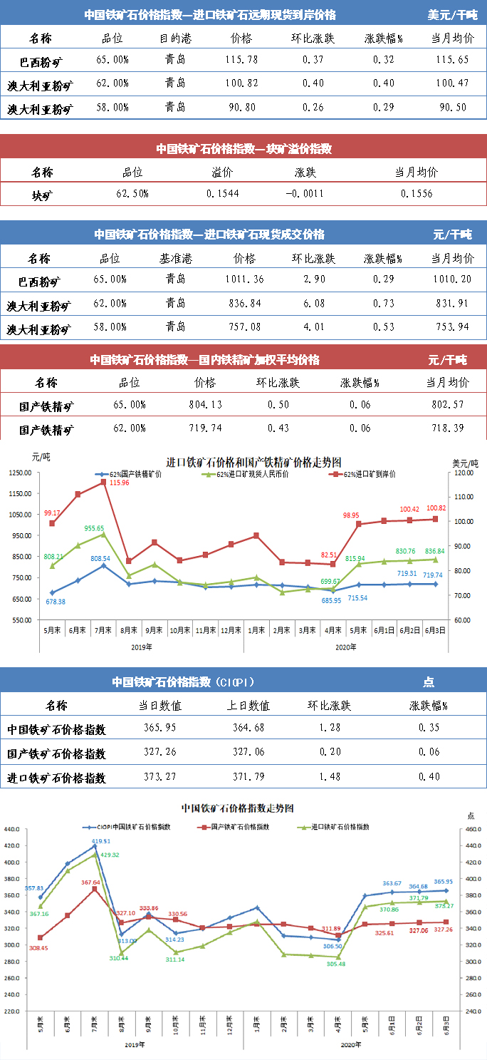 【行业指数】6月3日中国铁矿石价格指数