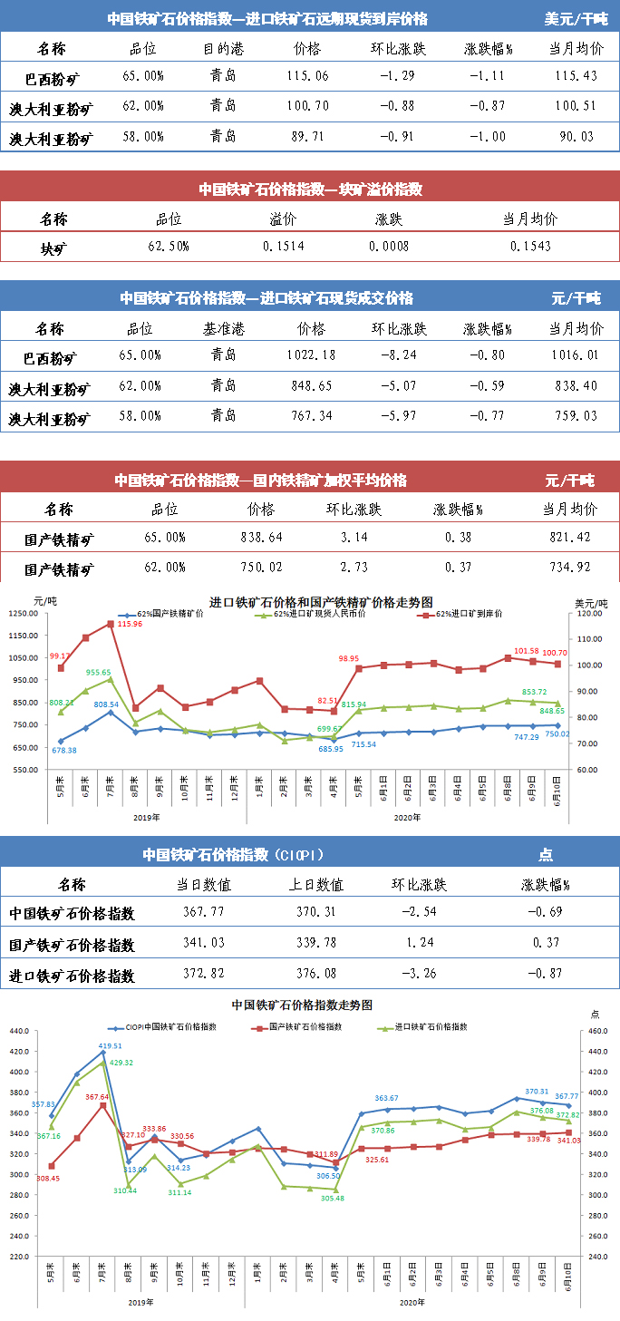 【行业指数】6月10日中国铁矿石价格指数
