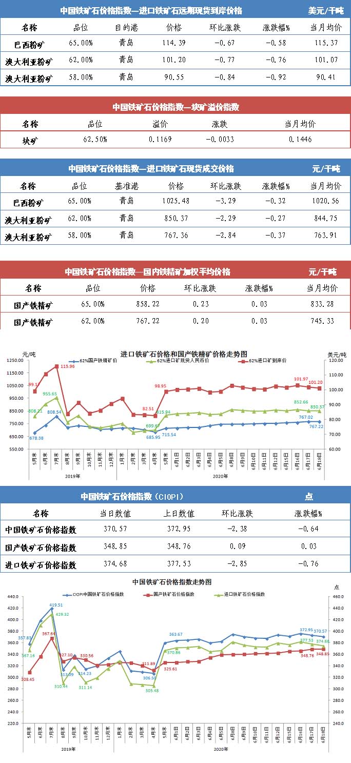 【行业指数】6月18日中国铁矿石价格指数