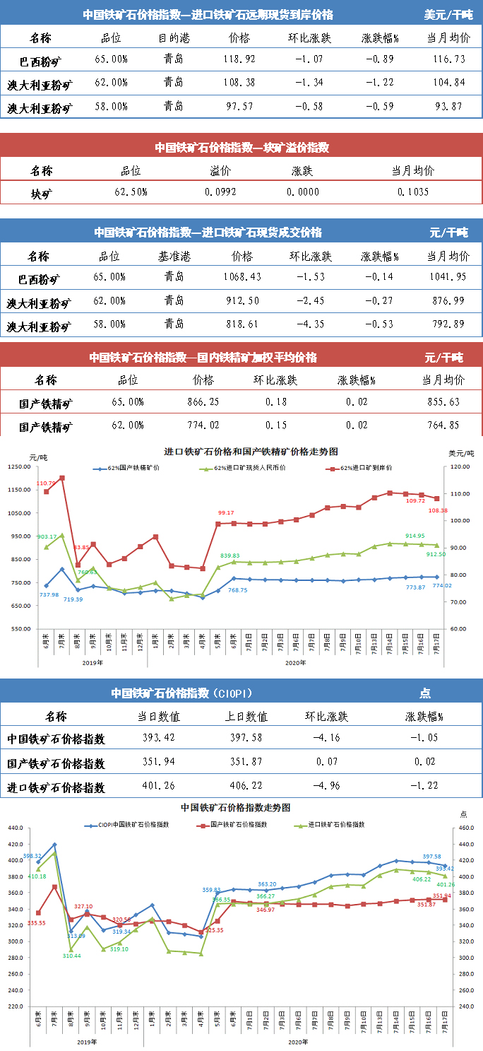 【行业指数】7月17日中国铁矿石价格指数