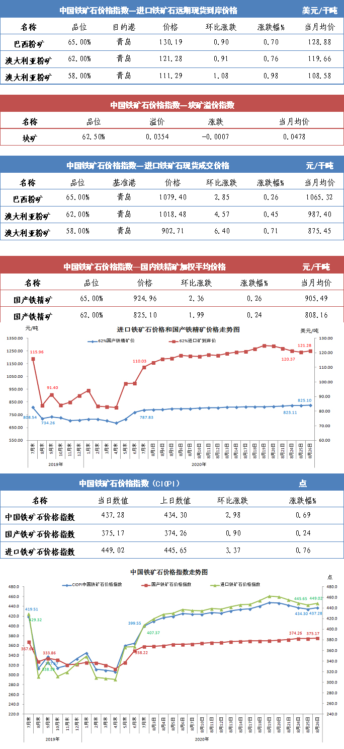 【行业指数】8月26日中国铁矿石价格指数