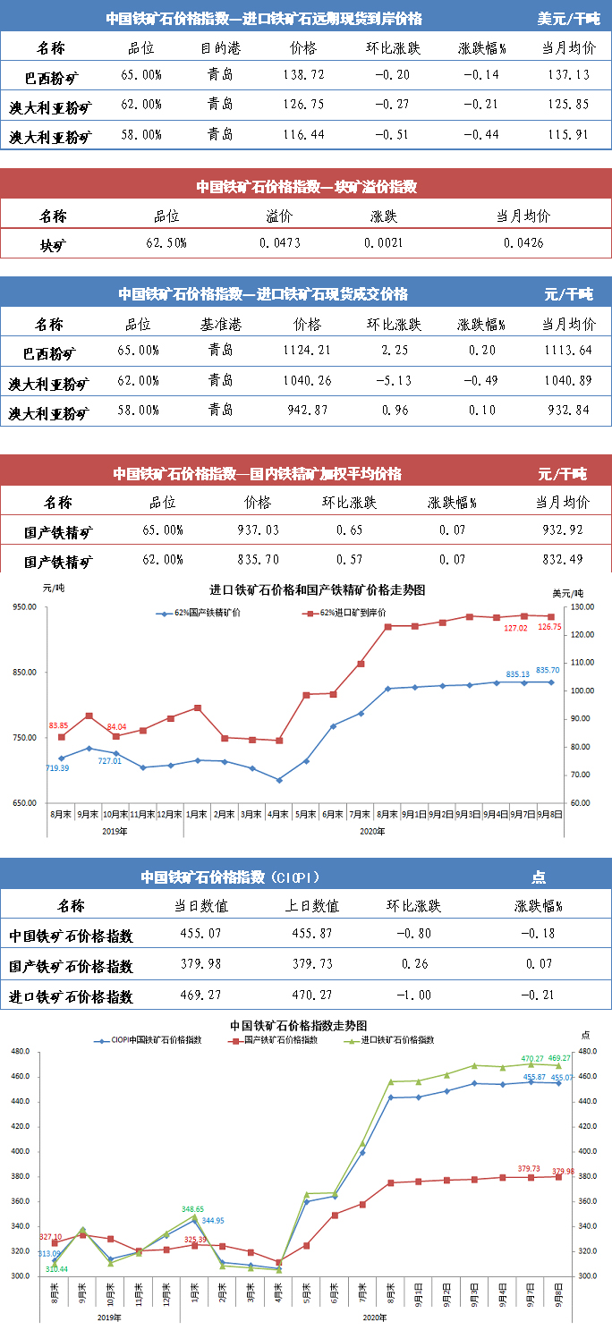 【行业指数】9月8日中国铁矿石价格指数