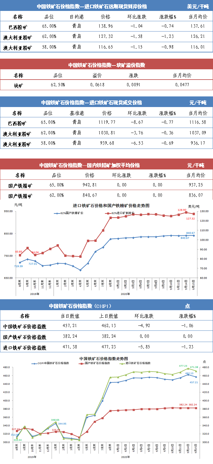 【行业指数】9月15日中国铁矿石价格指数