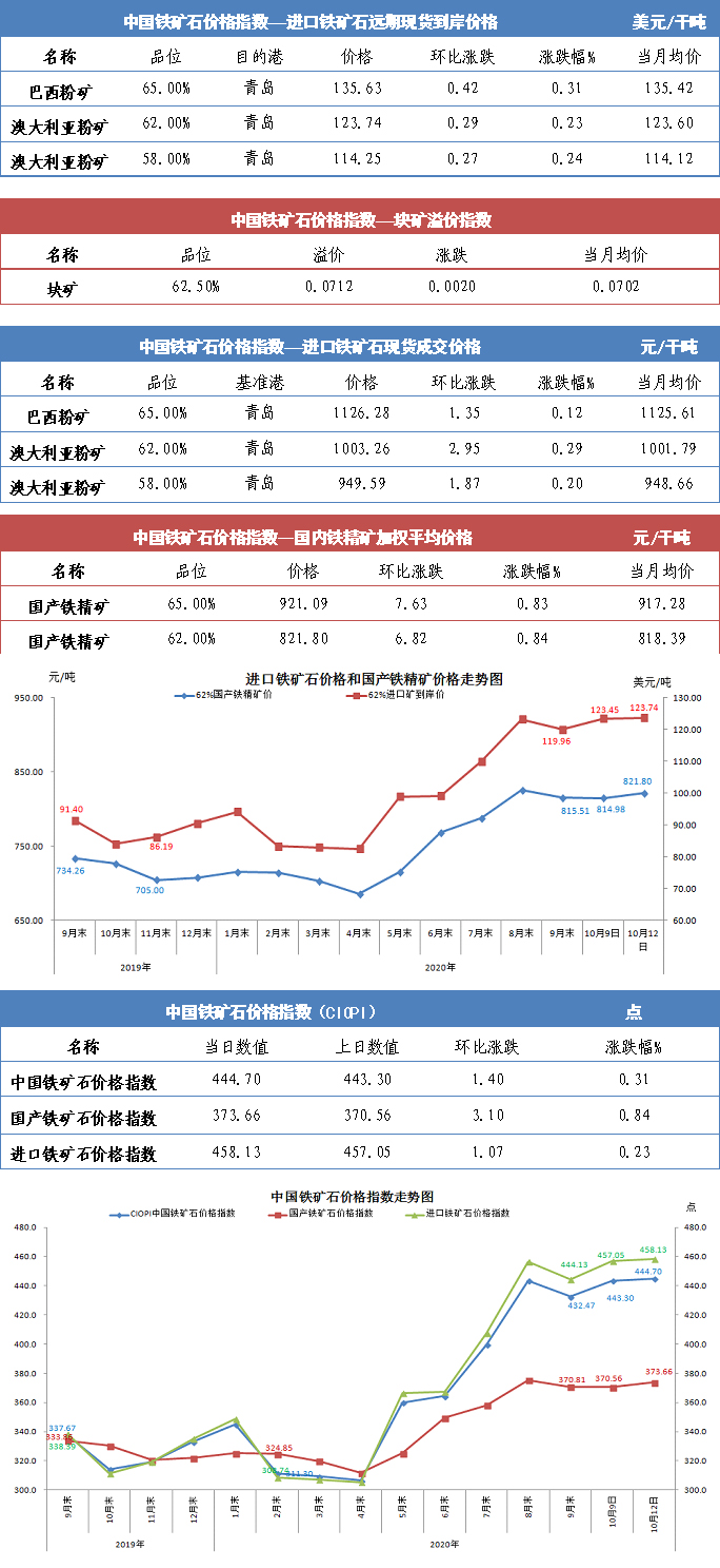 【行业指数】10月12日中国铁矿石价格指数