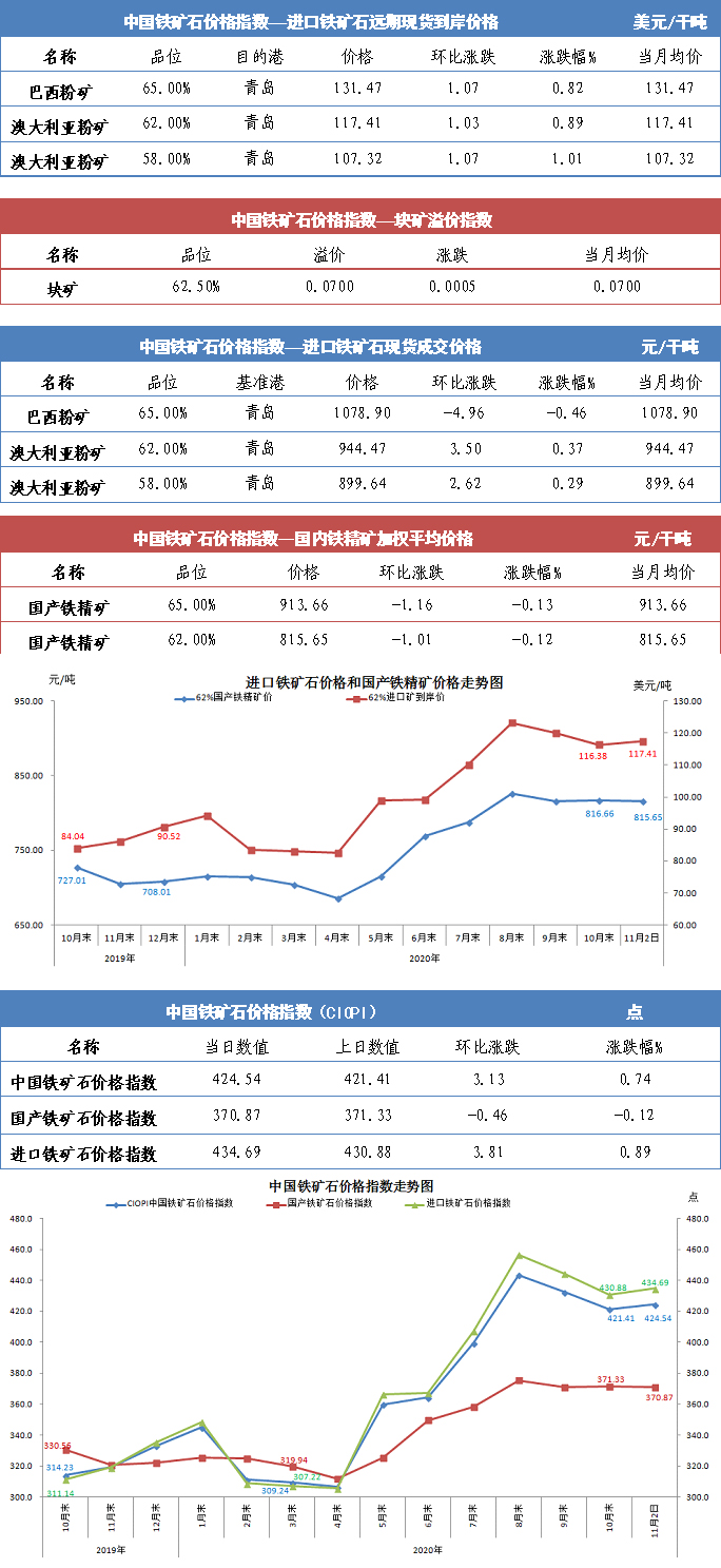 【行业指数】11月2日中国铁矿石价格指数
