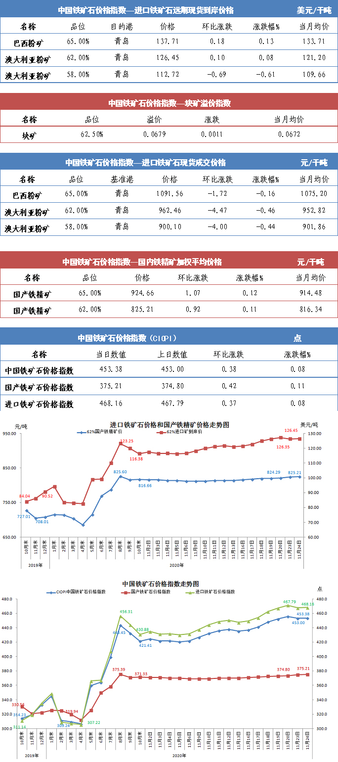 【行业指数】11月24日中国铁矿石价格指数