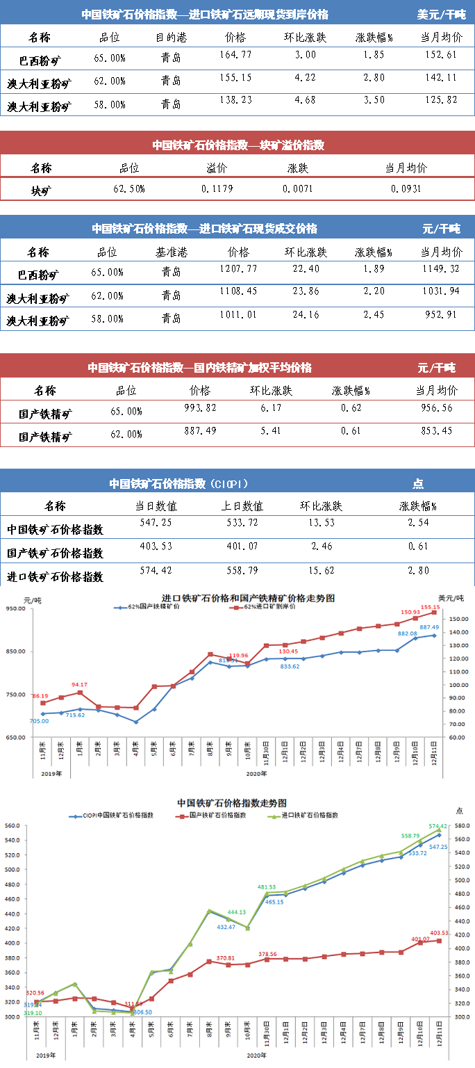 【行业指数】12月11日中国铁矿石价格指数
