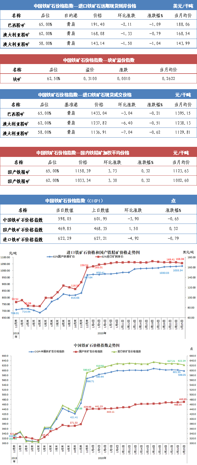 【行业指数】1月25日中国铁矿石价格指数