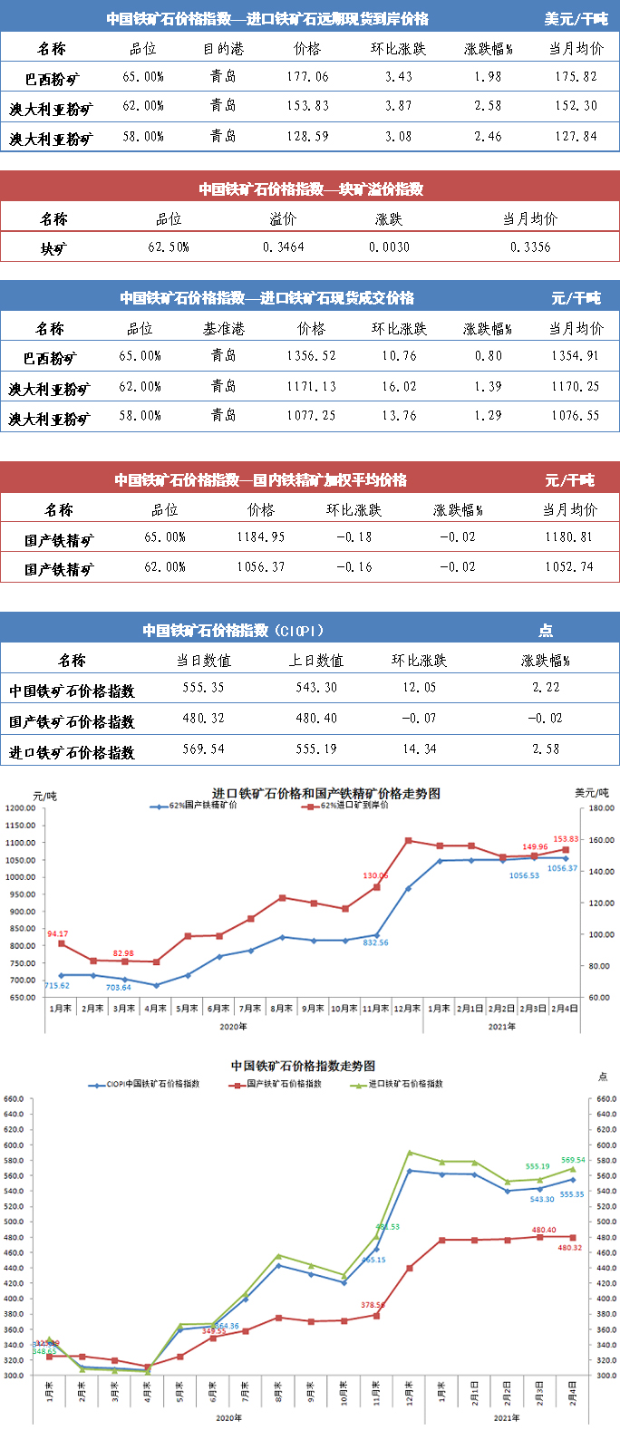 【行业指数】2月4日中国铁矿石价格指数