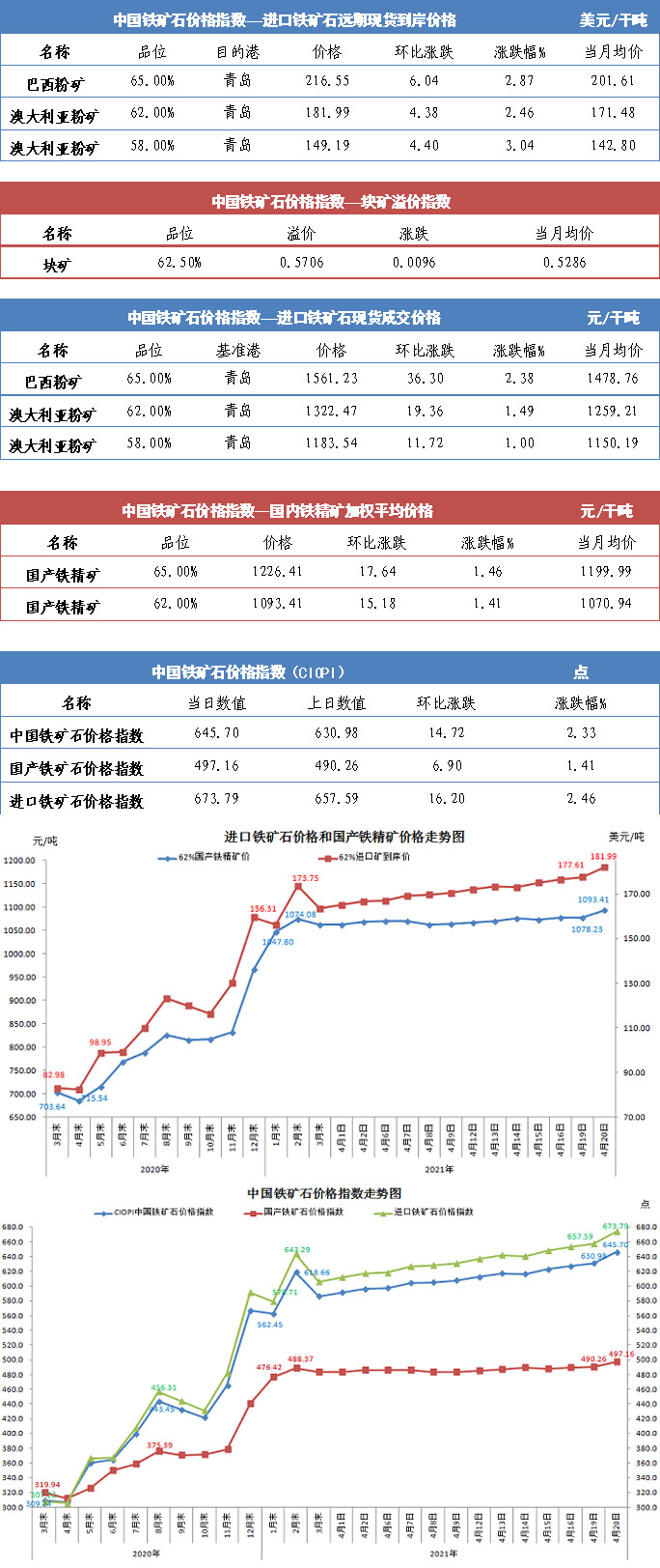 【行业指数】4月20日中国铁矿石价格指数
