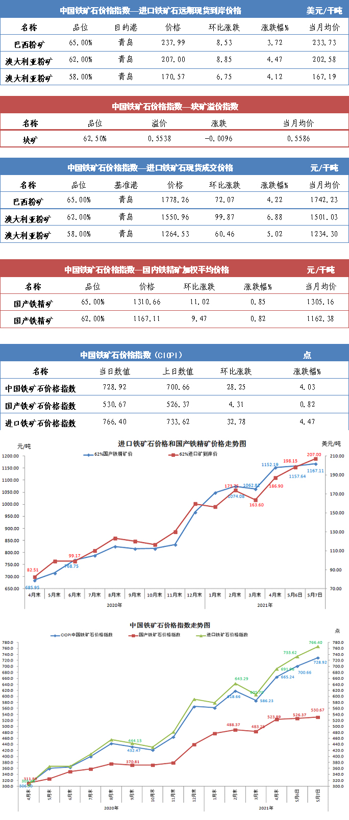 【行业指数】5月7日中国铁矿石价格指数