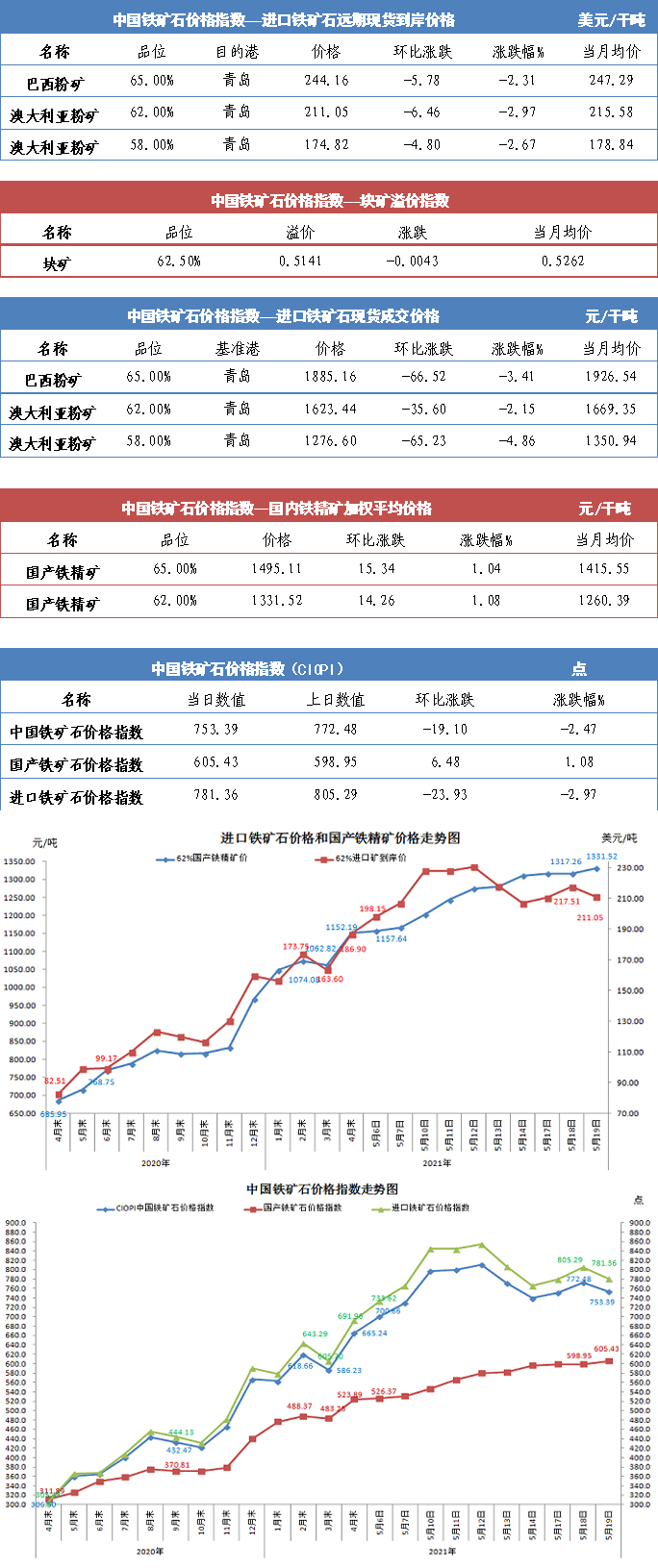 【行业指数】5月19日中国铁矿石价格指数
