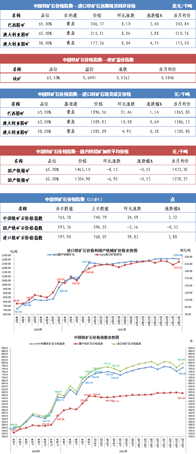 【行业指数】6月22日中国铁矿石价格指数