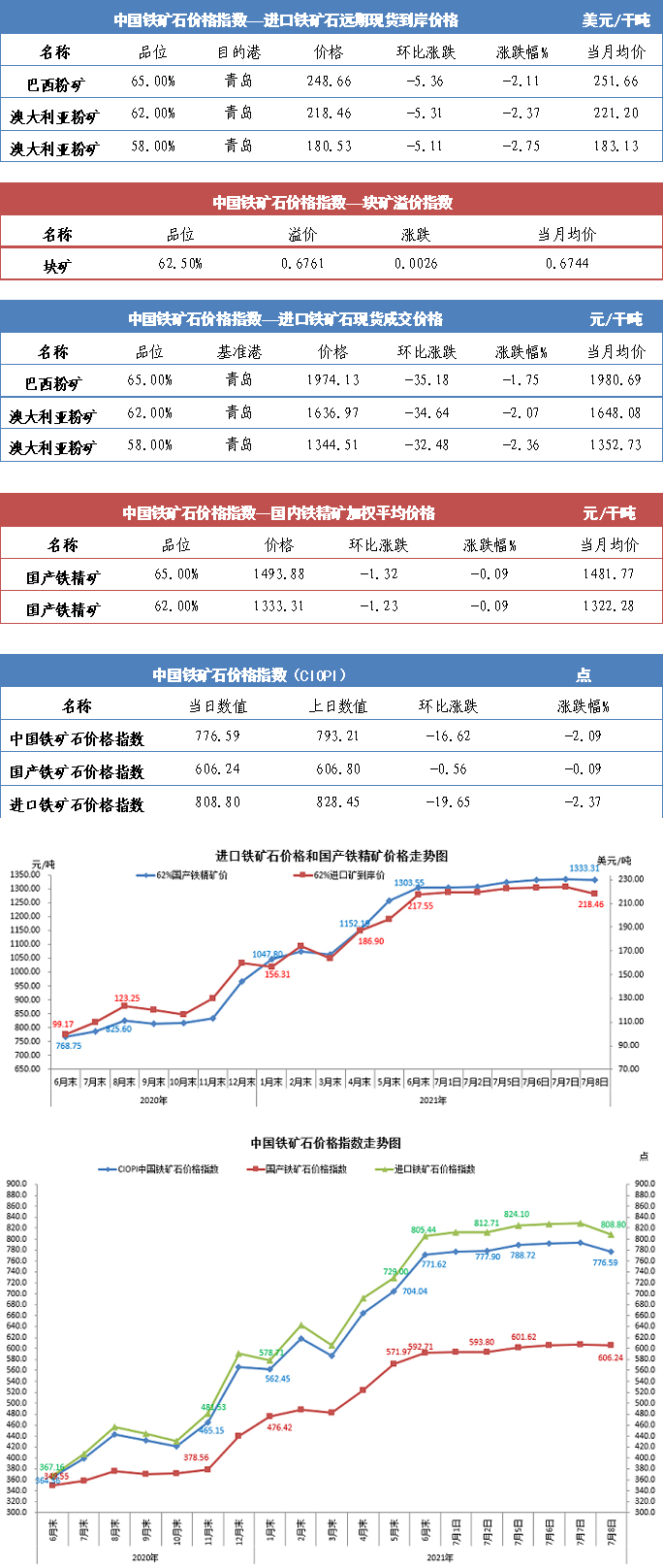 【行业指数】7月8日中国铁矿石价格指数