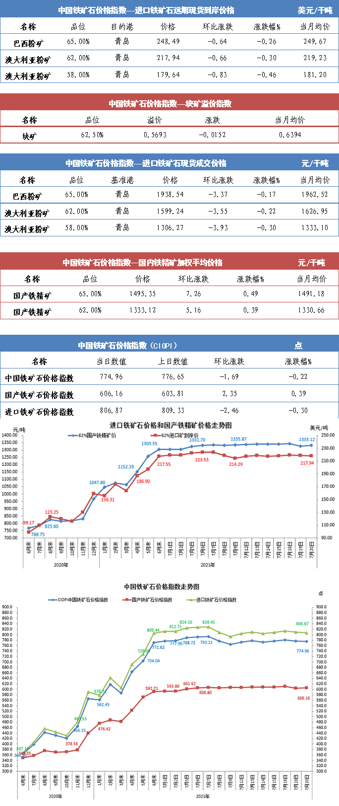 【行业指数】7月20日中国铁矿石价格指数