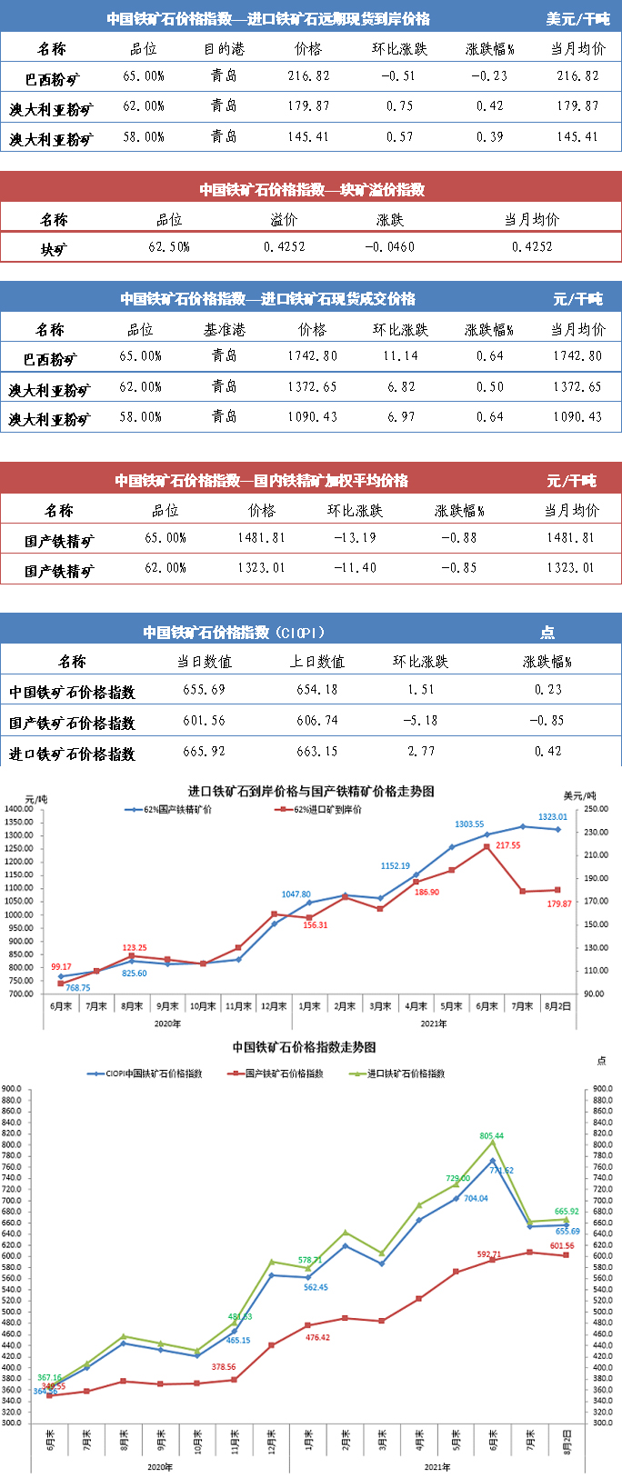 【行业指数】8月2日中国铁矿石价格指数